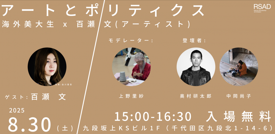 [2025/08/30] 【トークイベント】アートとポリティクス—海外美大生 x 百瀬文(アーティスト)