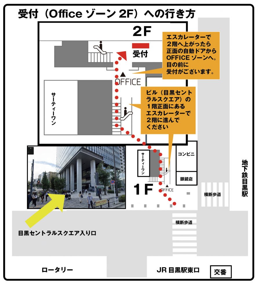 受付は目黒セントラルスクエア Officeゾーン2Fとなります