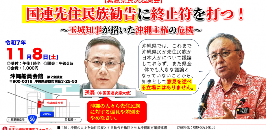 ■主催:沖縄の人々を先住民族とする勧告を撤回させる沖縄地方議員連盟