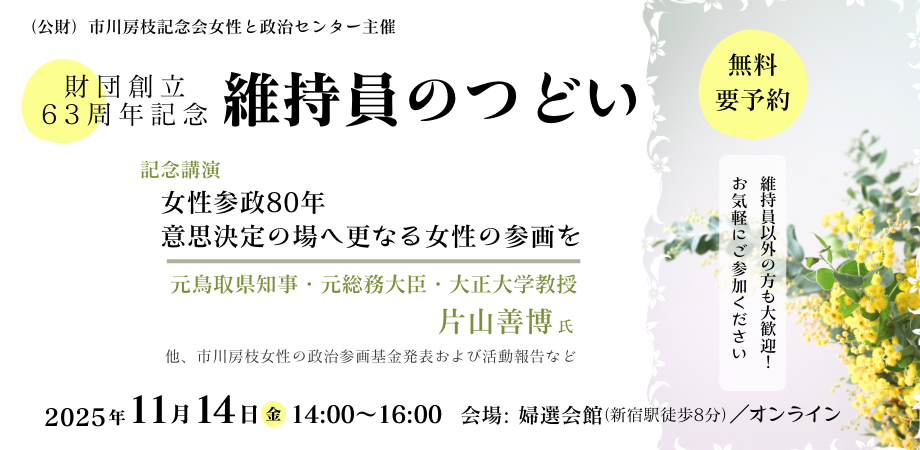 - 2025年度市川房枝女性の政治参画基金助成対象者発表と助成金贈呈